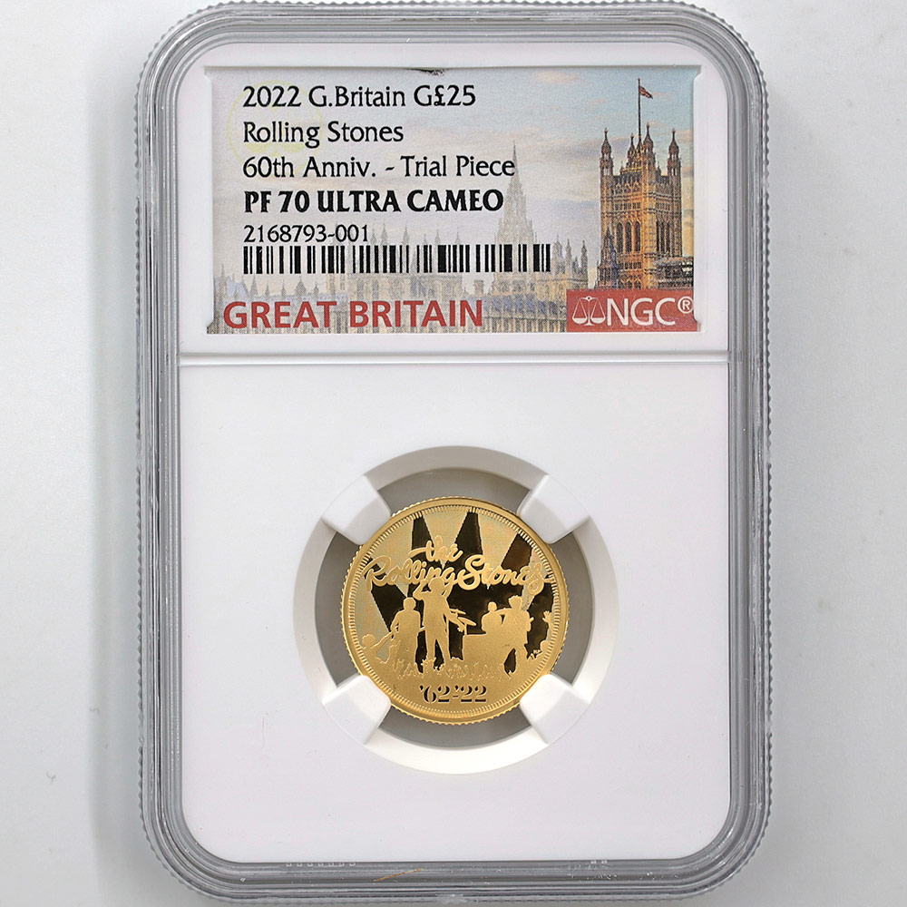 2022 Great Britain The Rolling Stones 60th Anniversary 25 Pounds 1/4 oz Gold Proof Coin NGC PF 70 UC Trial Piece