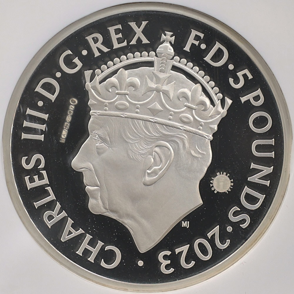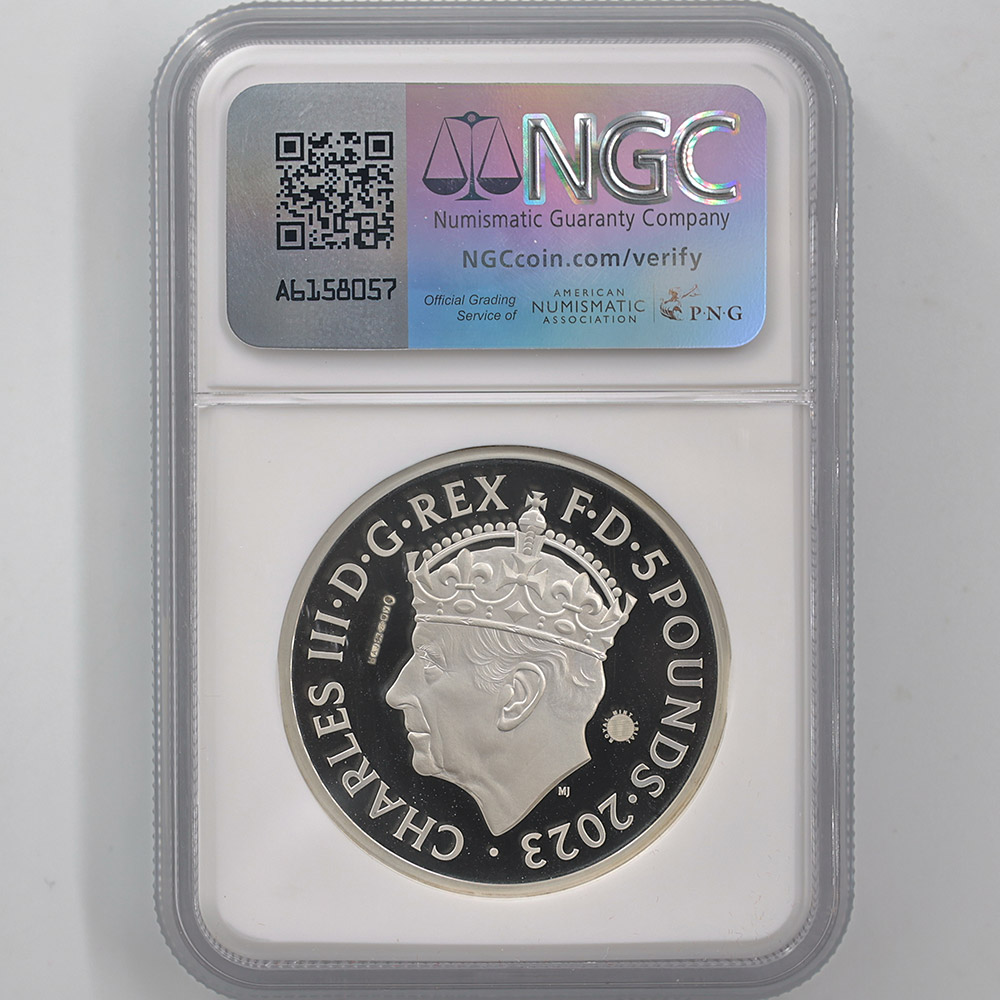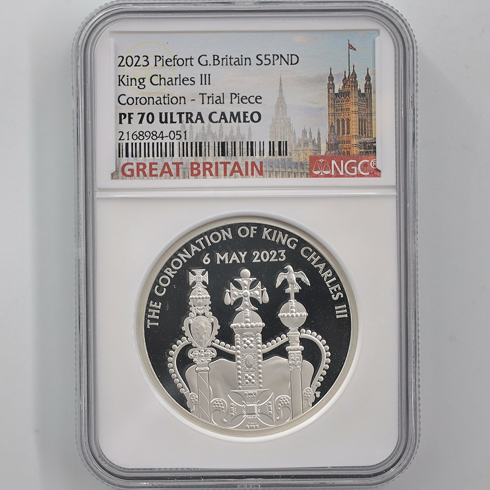 2023 Great Britain Charles III Coronation 5 Pounds 56.56 Grams Piedfort Silver Proof Coin NGC PF 70 UC Trial Piece