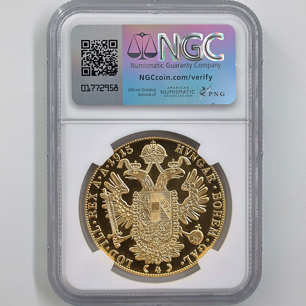 1915 Austria Franz Joseph I 4 Ducats 13.96 Grams Restrike Gold Coin NGC MS 70