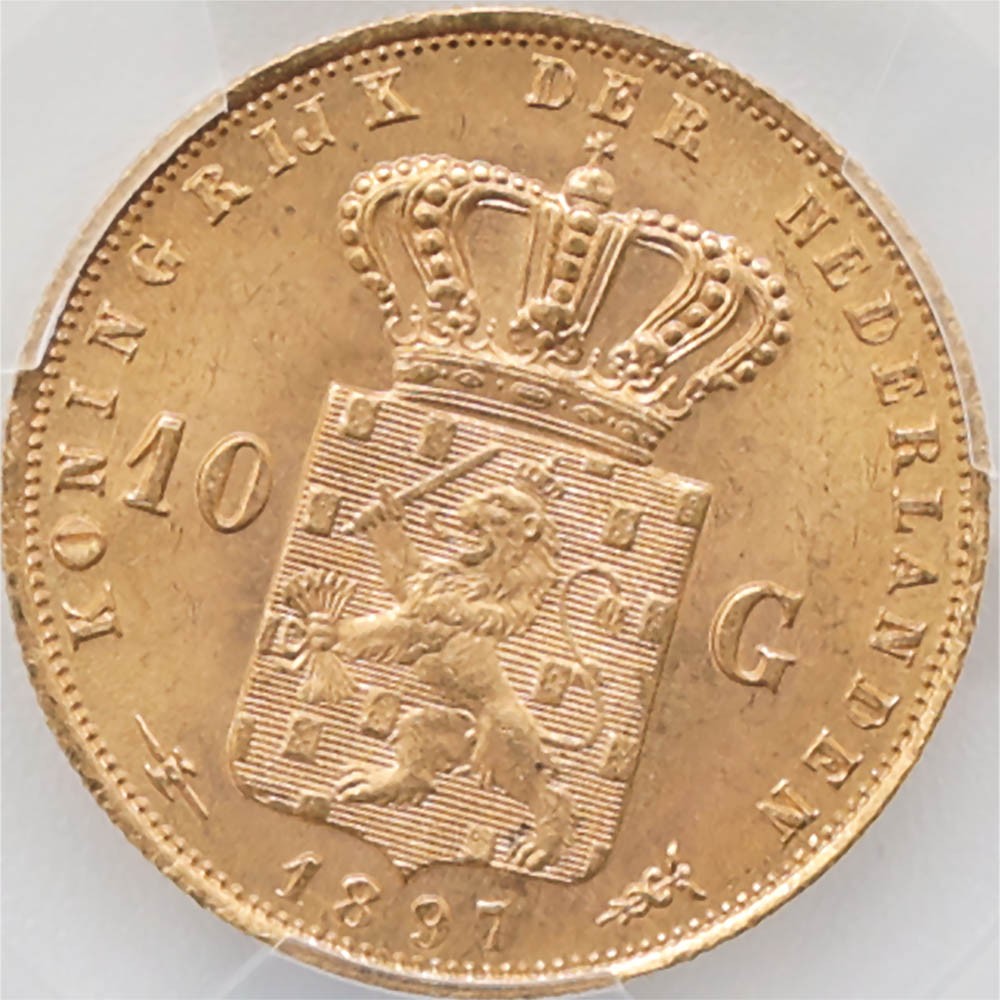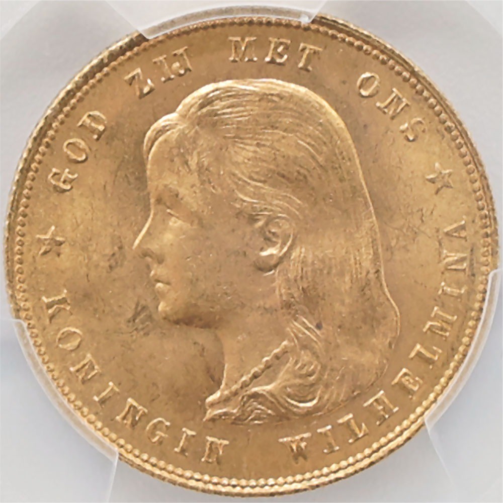 1897 Netherland Queen Wilhelmina 10 Gulden 6.72 Grams Gold Coin PCGS MS 66