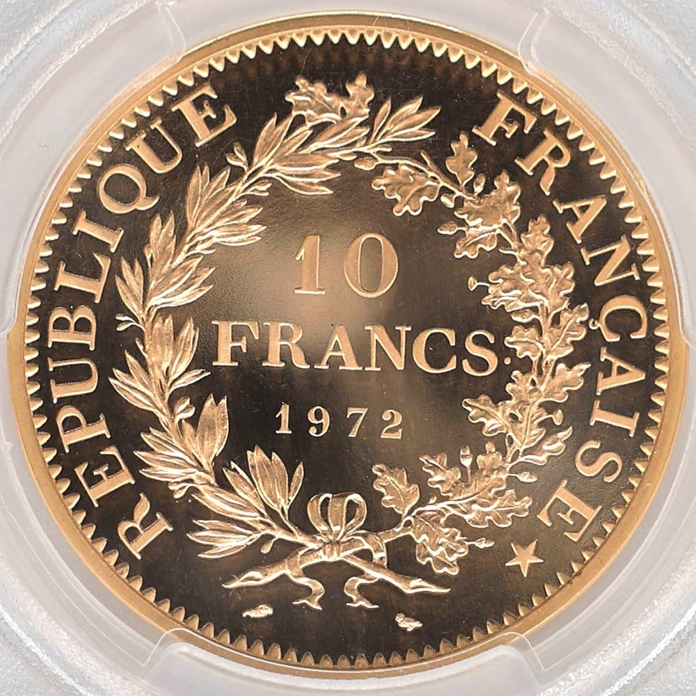 1972 France Hercules 10 Francs 102 Grams Piedfort Gold Proof Coin PCGS SP 69