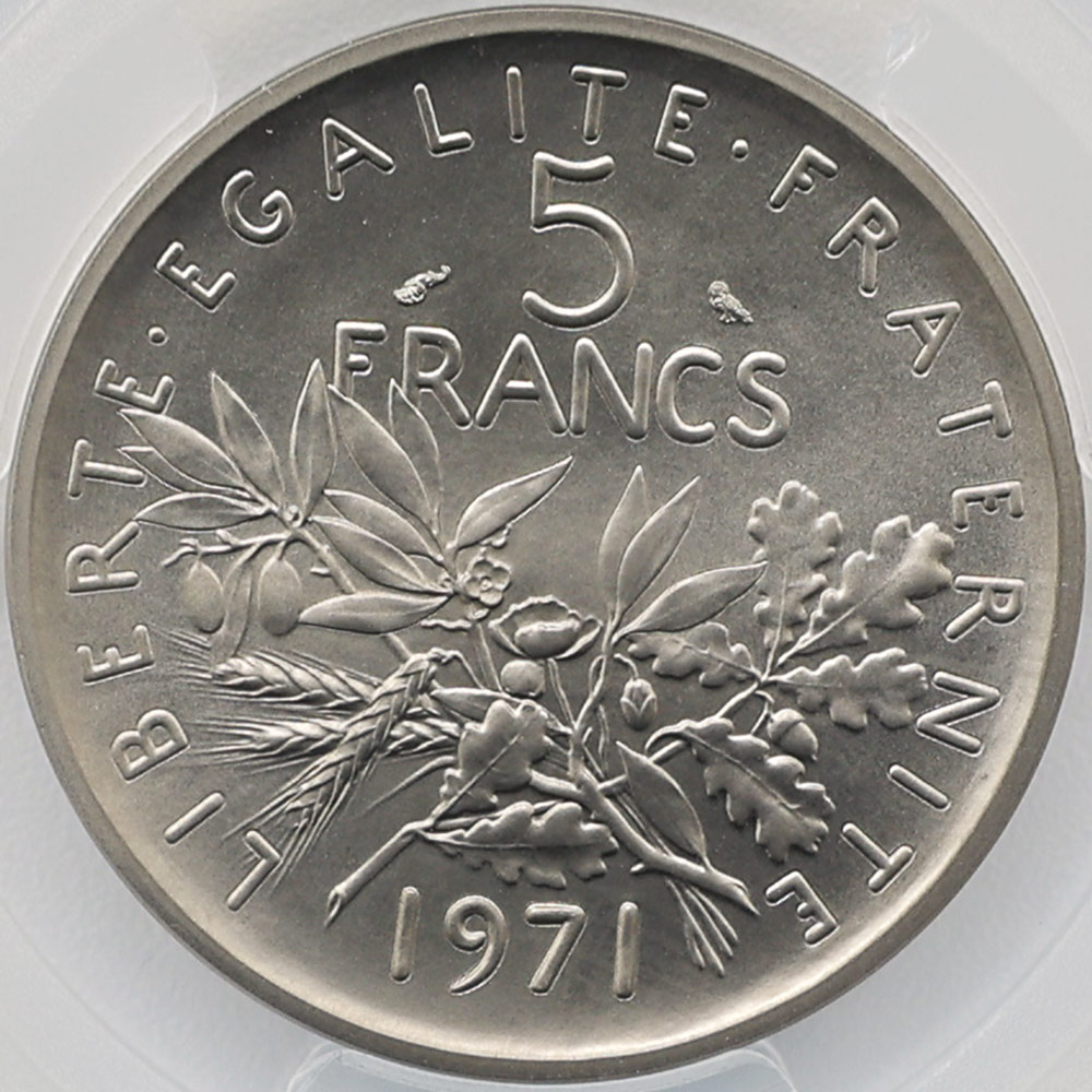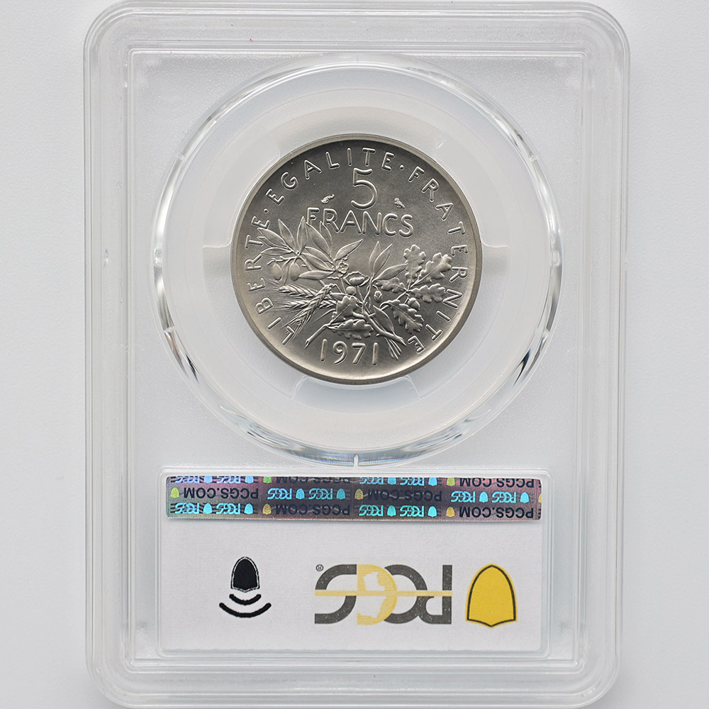1971 France La Semeuse French Sower 5 Francs 20 Grams Piedfort Copper-nickel Coin PCGS SP 69